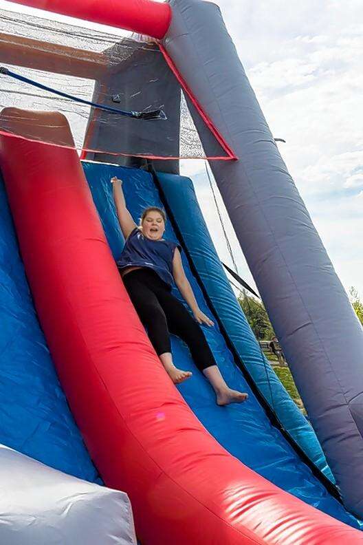 Du Quoin Middle School fifth-grade student Chloe Speck takes a ride on the inflatable slide during Fun Day.