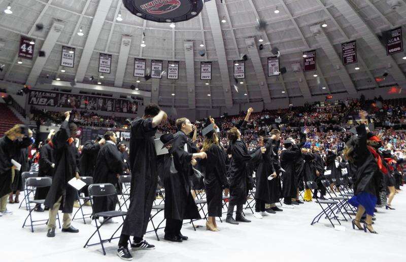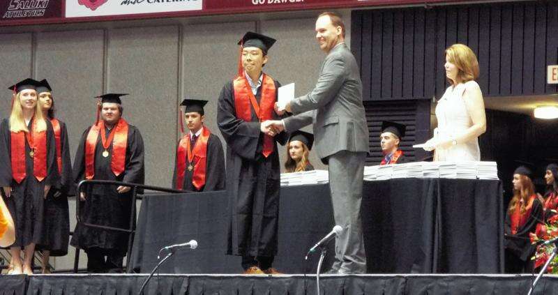 It was hot and stuffy in the narrow, back halls of the SIU Arena on Saturday as the graduates of Carbondale Community High School lined up in their caps and gowns for commencement.