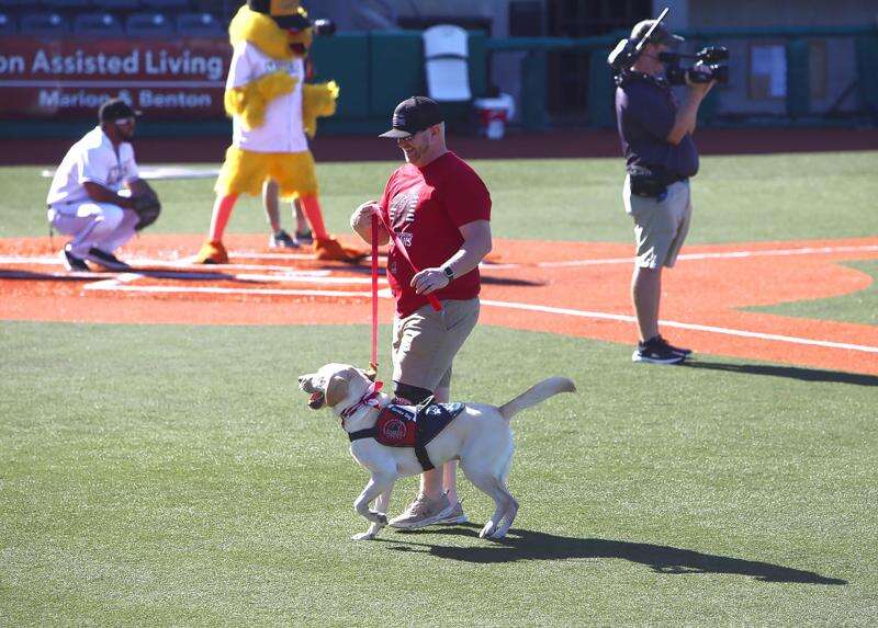 Childers and Largent, along with others from the organization including several vets and their service dogs, joined employees of Marion's South Porte Bank at Rent One Park in Marion on Sunday to bring awareness for the organization and hopefully, more support.