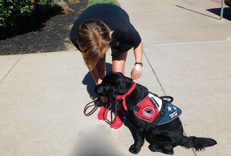 Sarah Childers is currently training Neill, a two-year-old labrador. Along with basic obedience, Neill will alert to PTSD, anxiety, nightmares, and can also retrieve. Holly Kee photo