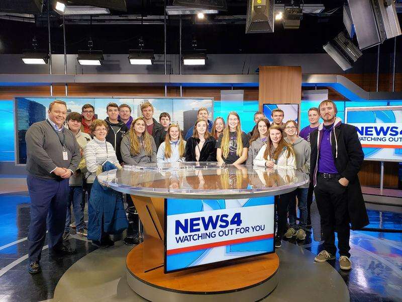 First, they visited the studios of KMOV in St. Louis, where they tried out several jobs in broadcast journalism including office support, camera and sound, working with a green screen, to being the newscaster on the shows. Students also saw the end of Great Day St. Louis and got to experience the set.