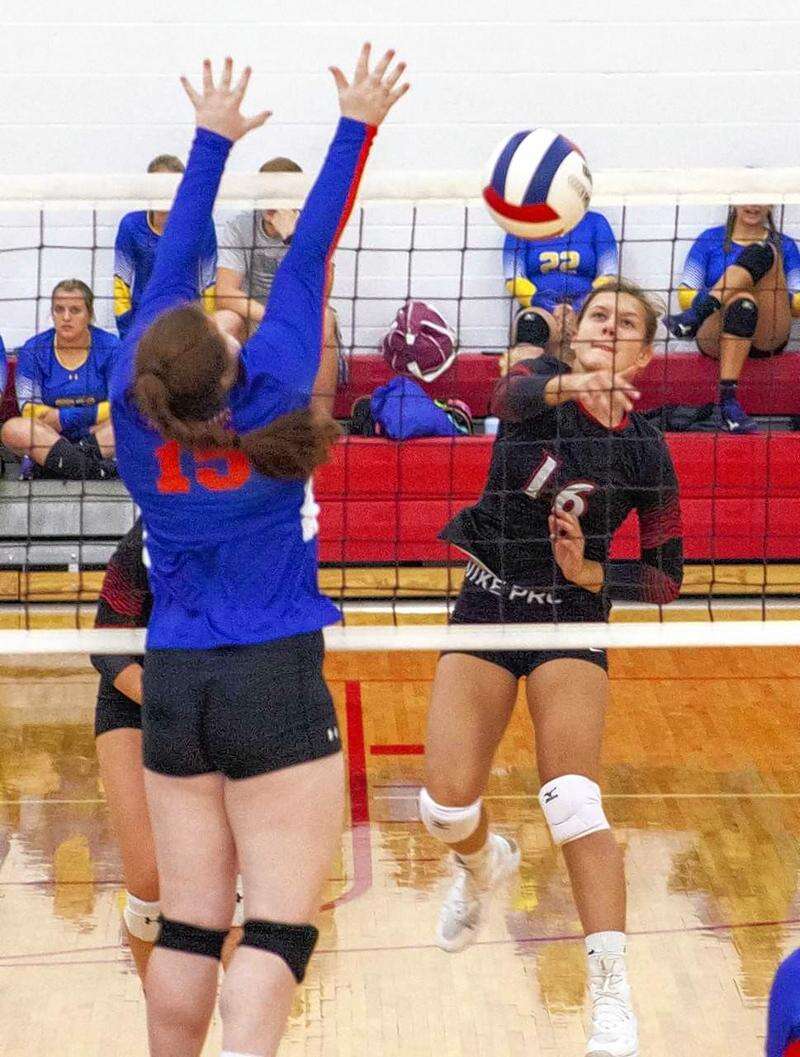 Senior Elizabeth Bird, an outside hitter who will play for John A. Logan College at the next level, has been recovering from an injury. Bird had 12 kills in the win over Okawville.