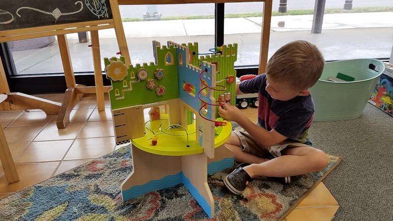 Here, Sawyer Morgenstern, 4, of Du Quoin, works on his motor skills by playing at this activities table at the library.