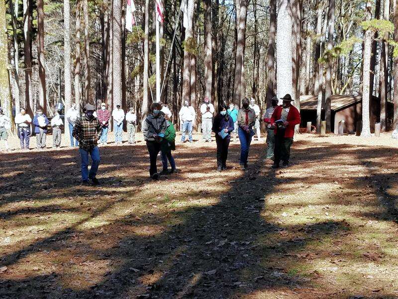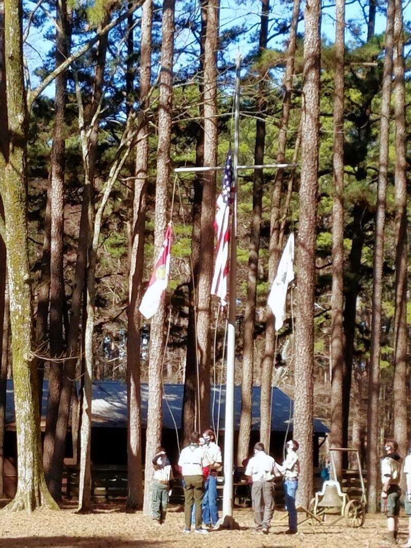 Boy Scouts raise the colors at the 50th Klondike Adventure 2021 the past weekend. TRAVIS DENEAL PHOTO