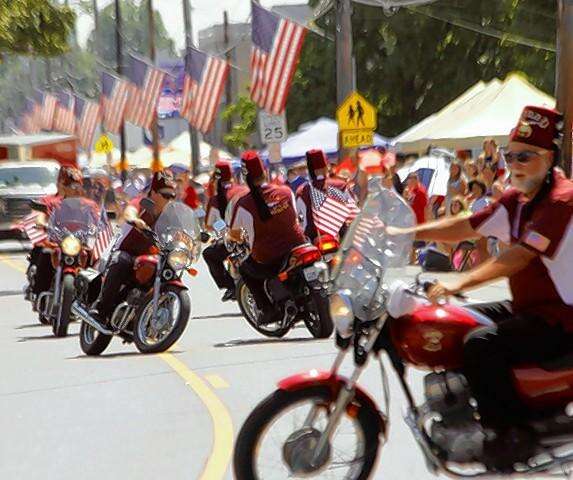 The Ainad Temple Shriner perform manueveers on motorcycles at the Steeleville Fourth of July parade. Shot by Shields photo